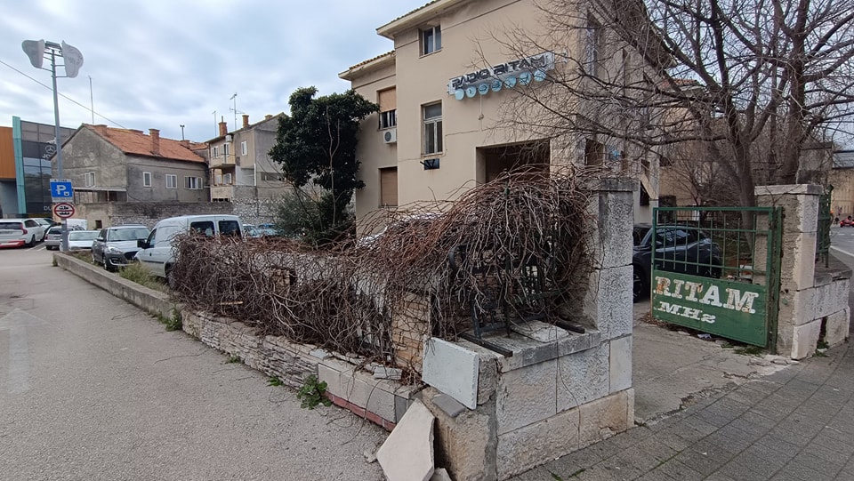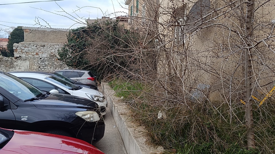 “Zgrada nasuprot bolnice u kojoj se nalazi Radio Ritam. Okućnica je jako neuredna. Granje je izraslo na sve strane. Zapinju od to prolaznici ali i automobili na plaćenom parkingu. Kad se nitko neće prihvati škaranja i uređenja toga prostora šteta što se subotnja prezentacija rezidbe maslina nije iskoristila da se bar malo tih grana ukloni.”