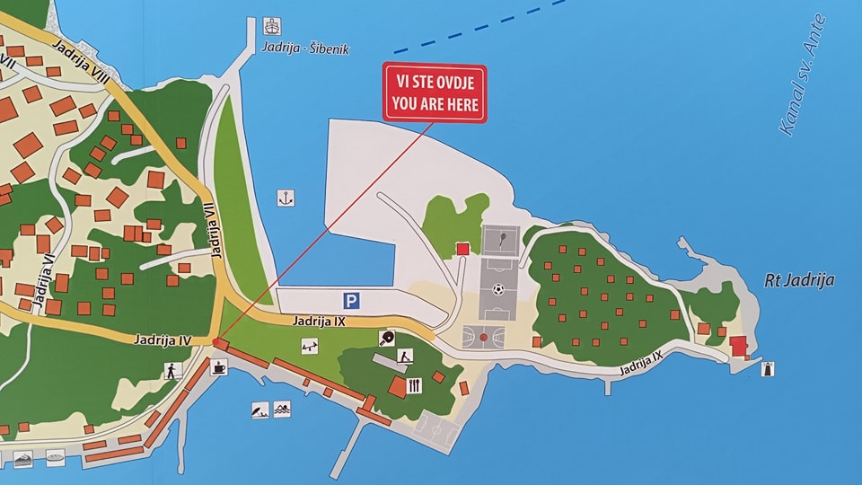 “Jadrija. Evo odnedavno novi plan grada na istom mjestu. Jedina razlika koju sam uočio je da oznaka You are here ovaj put pokazuje točnu lokaciju, a WC više nije označen. Hvala Divna, divna si!”