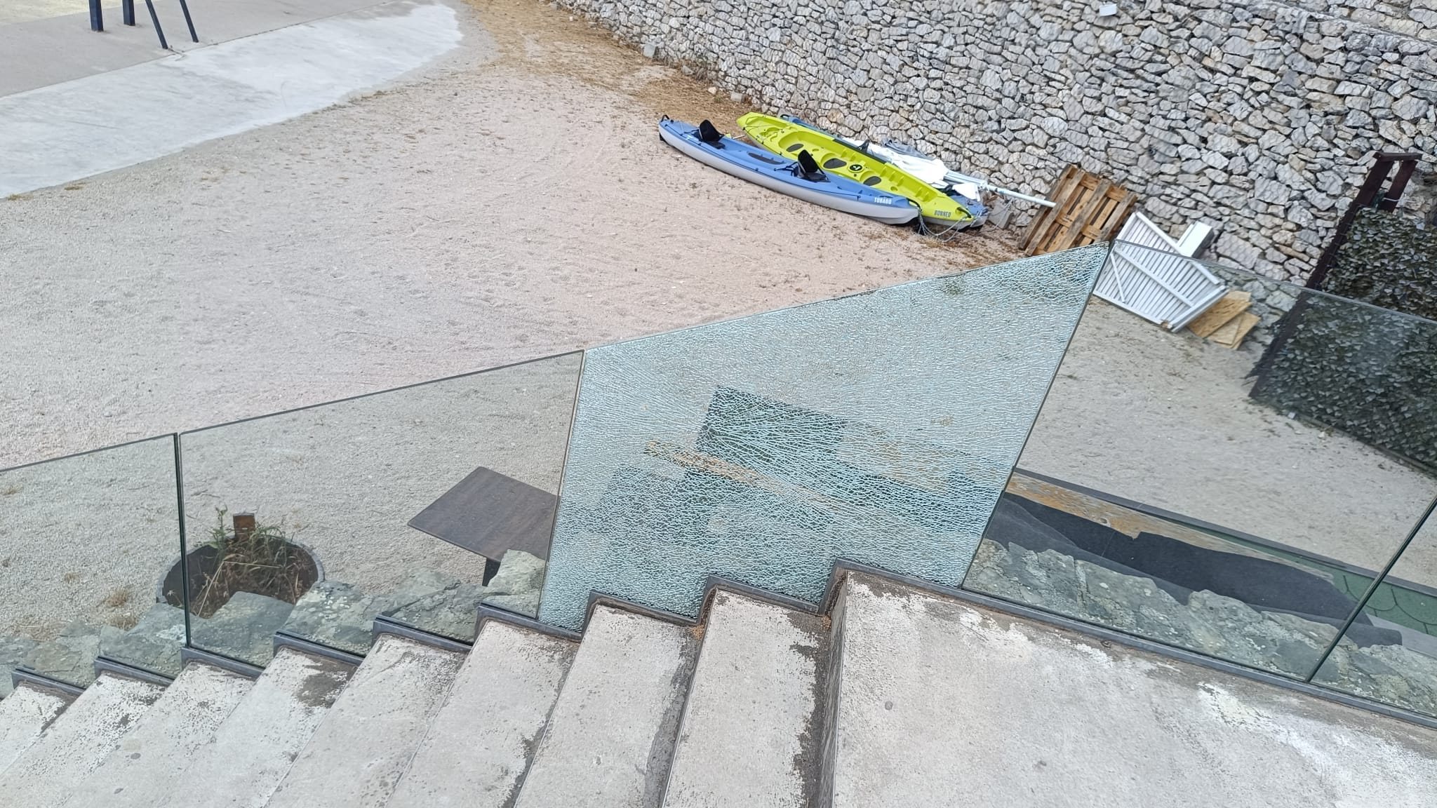 “Banj. Puknutu dasku treba zamijeniti, a ne rupu sakrit pitarom. Zahrđana ograda i oštecena stskla isto traže intervenciju, kao i išarani znak koji ne ostavlja dobar prvi utisak pri ulasku na plažu.”