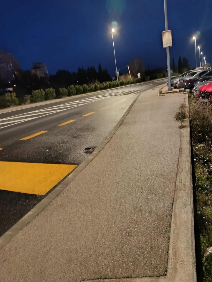 “Na Biocima kod novih POS-ovih zgrada su izbrisali pješački prijelaz. Ovaj pješački prijelaz bio je sigurniji od bilo kojeg na križanju sa semaforima jer na svakom u isto vrijeme kad je zeleno pješacima, zeleno je i vozačima. Sada nam za ići prema rasadniku/Tommyju/školi preostaje pješački prijelaz na kojem zeleno traje jako kratko, nema šanse da ga brzim korakom prijeđete u roku, a kamoli ako su s vama djeca. Na istom tom prijelazu u isto vrijeme je zeleno vozačima koji iz smjera Mandaline skreću desno i često zaborave da moraju propustiti pješake (a njima to zeleno isto kratko traje).