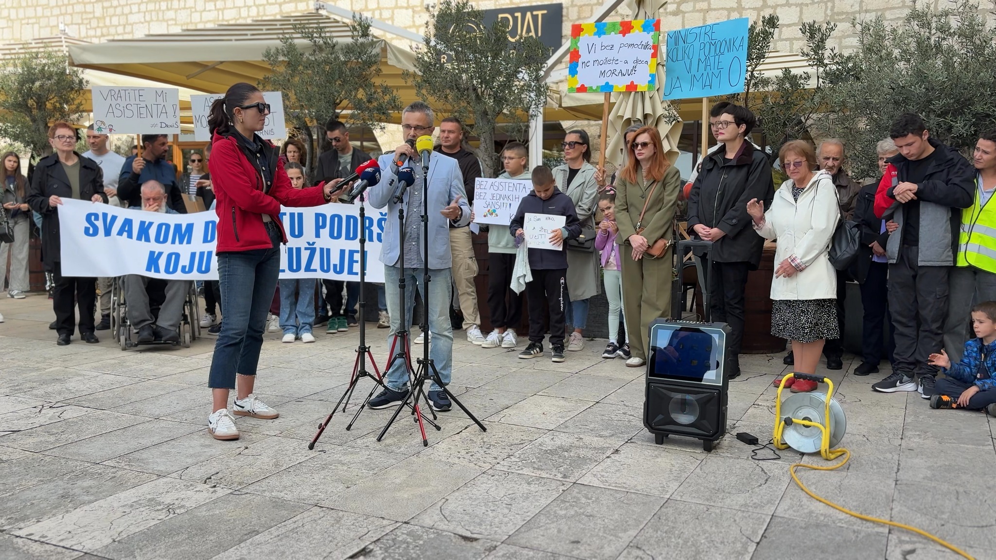 Roditelji i učitelji poručili su da se mali dio novca za udruge i festivale može preusmjeriti za plaće pomoćnika, jer bez njih mnoga djeca nemaju osnovno pravo na obrazovanje. “Naša djeca ne mogu bez pomoćnika, a diskriminacija između škola po plaćama dodatna je nepravda,” istaknuto je na prosvjedu.