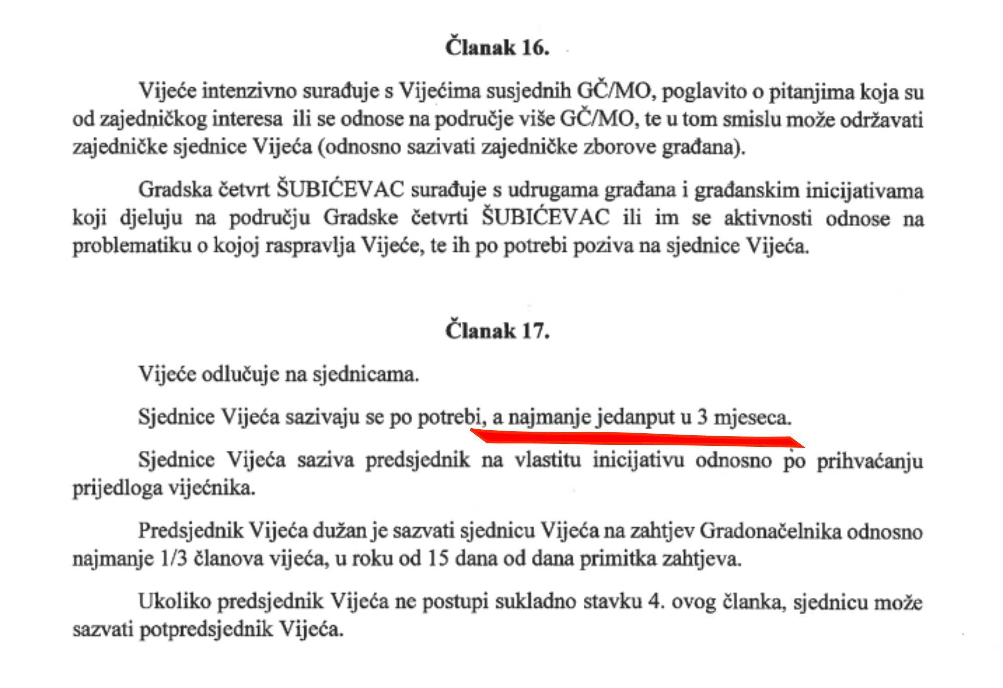 Po Pravilima o radu GČ Šubićevac, sjednice se moraju održati najmanje jednom u 3 mjeseca, a o svakoj se vodi zapisnik; sjednice su u pravilu javne. Što je na tim sjednicama zaključeno (ako su se održale) i gdje se to može pročitati?