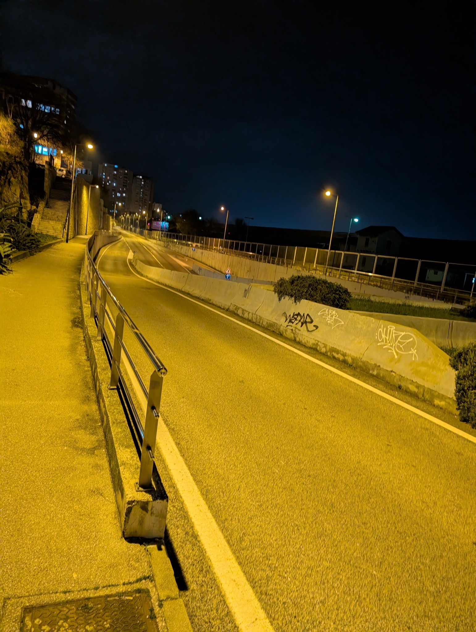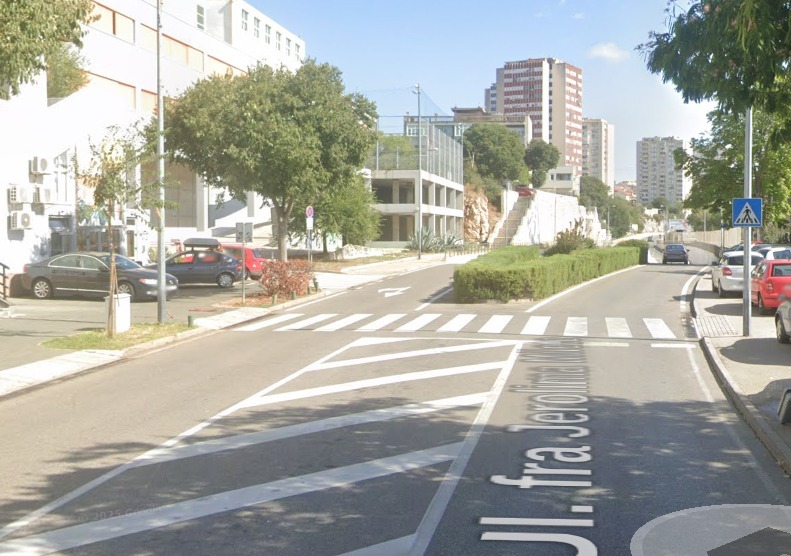Izuzetno opasan pješački prijelaz. Posadili su živicu točno tako da ne vidiš automobil koji s tehnološke ceste izlazi prema socijalnom. Tu vozači vole stisnuti gas više od ičeg na svijetu na toj uzbrdici i prelazak se čini nepotrebno opasnim, jer doslovno NE VIDIŠ automobil koji dolazi, niti vozač automobila vidi pješake. Po projektu tu očito ne bi trebalo biti grmlje, jer valjda nisu potpuni debili ti koji su projektirali i pazili su na vidljivost, pa je netko na svoju ruku grmlje posadio.