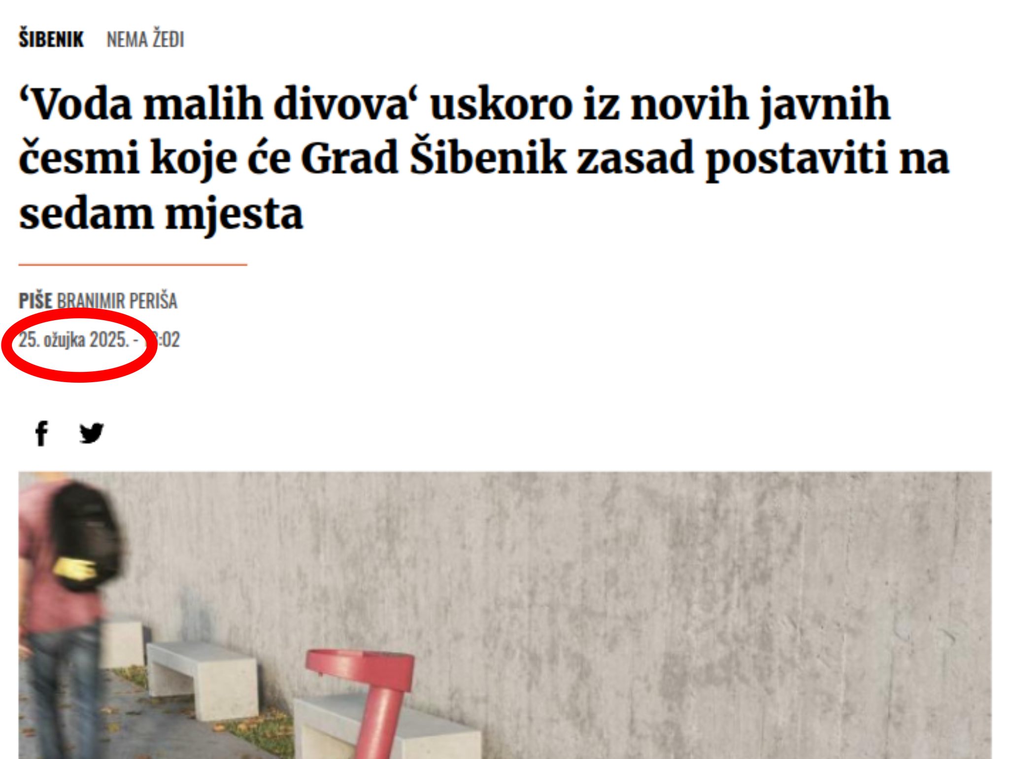 Žega je velika, od obećanih 10 novih javnih česma od željeza koje bi valjda preživjele i nuklearni udar nemamo nijednu. Rok je bio 21. ožujka 2025., pa je Slobodna popravljala štetu par dana kasnije nakon tog datuma s nekakvim nemuštim člankom koji ne kaže apsolutno ništa: ni kad, ni zašto je zapelo ni što se događa. Naravno prešutjeli su da je rok prošao, prije izbora se to ne piše.