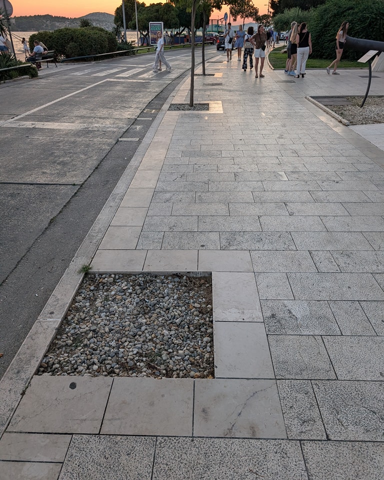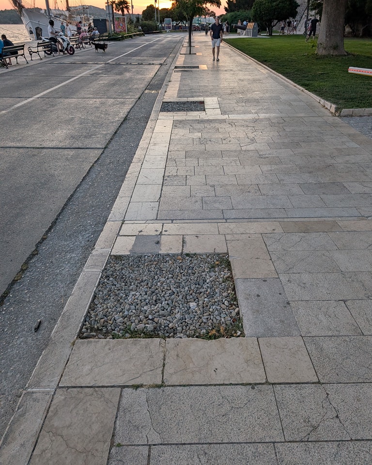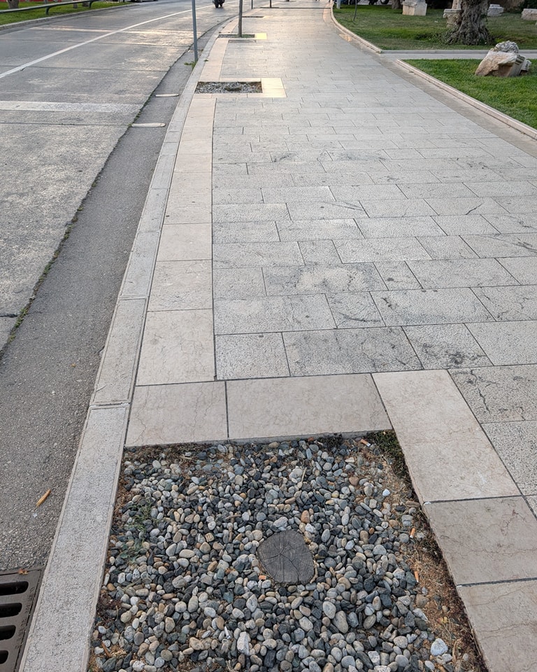Čudi li ikog da jednom kad su stabla bila loša da su ih ispilali i nikad stavili nova? Tako tipično za gradske službe, a sigurno nije predviđen ovakav izgled inače lijepe šetnice. Zar im je i to teško napraviti, a stalno se nešto hvale oko zelenila?