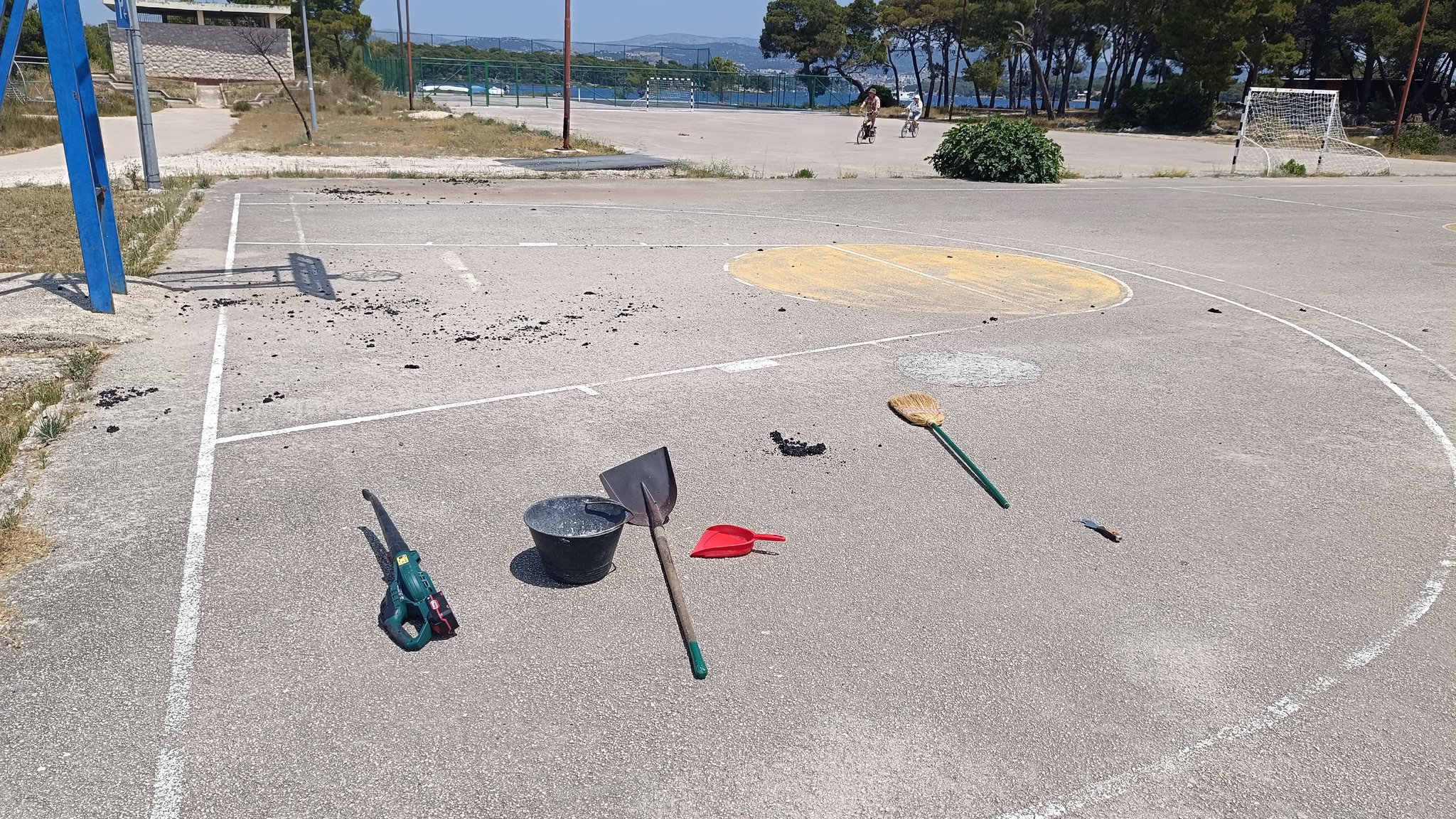 “Jadrija. Novosti: Postavljeni koševi za smeće. Ofarbani uspornici. Radi se na dječjem igralištu. A i kupači se uhvatili posla. Košarkaški teren očišćen od asfalta. Pometeno ispred i iza nekoliko kabina. Kad svi dadu svoj doprinos odmah se vidi napredak.💪”