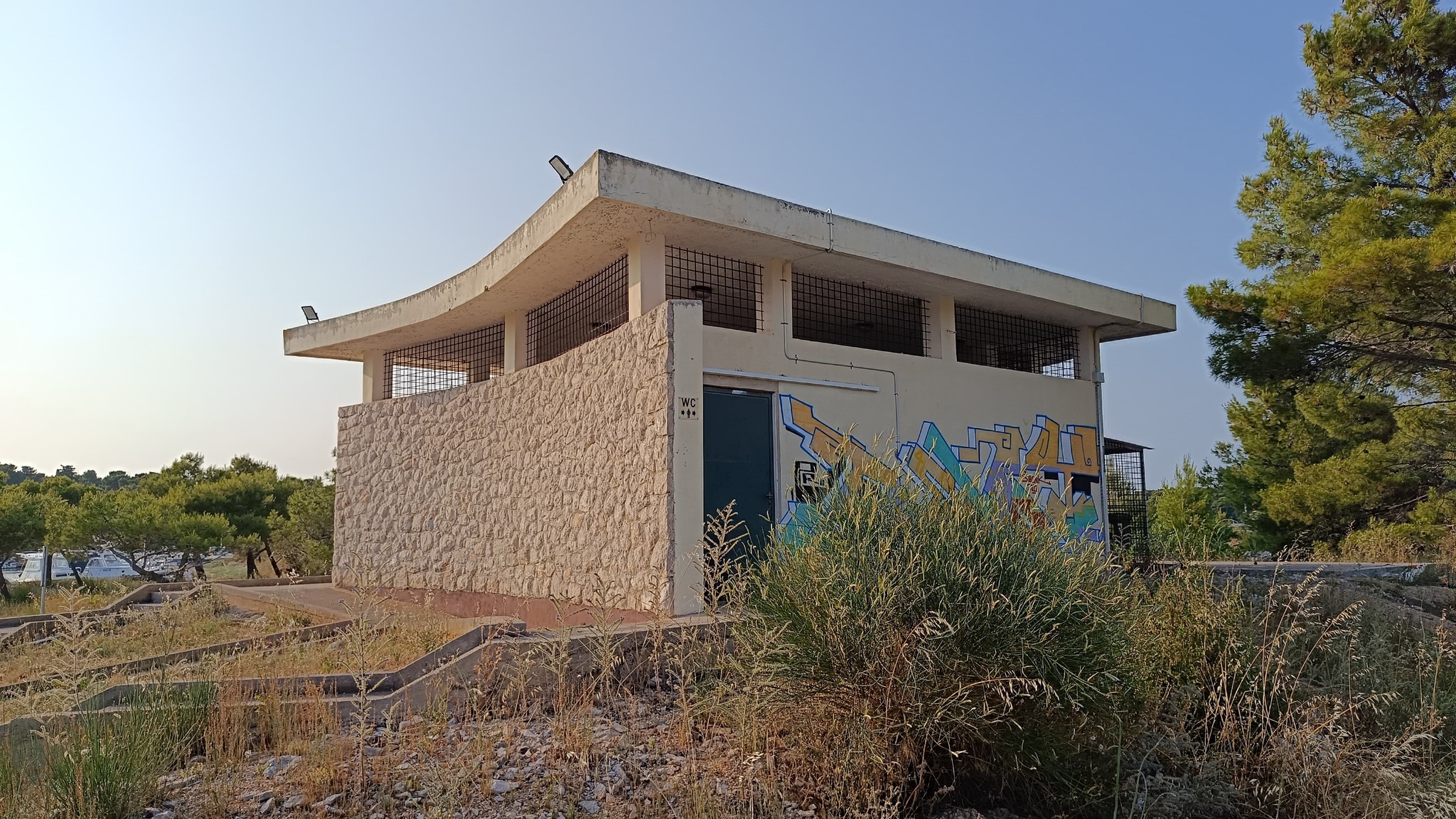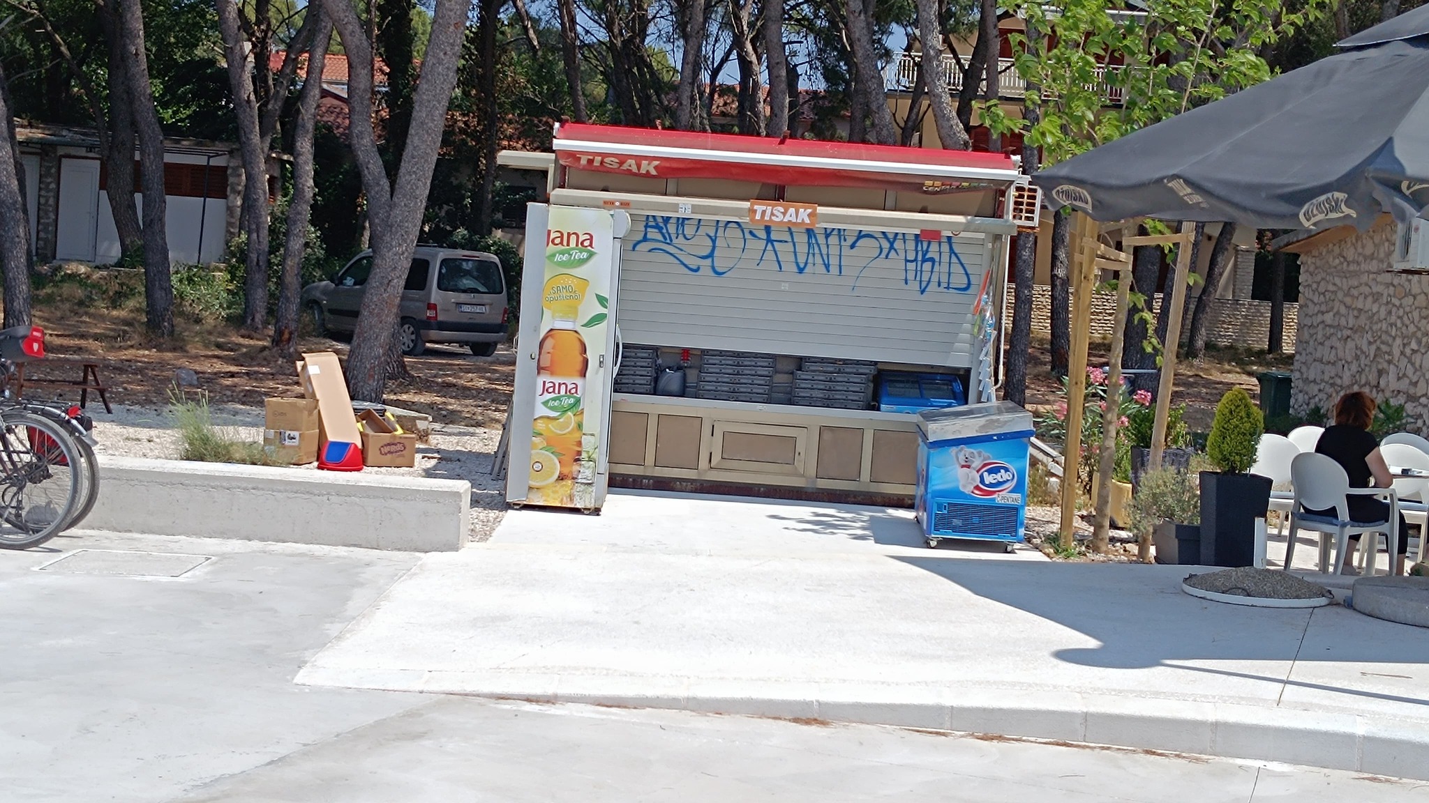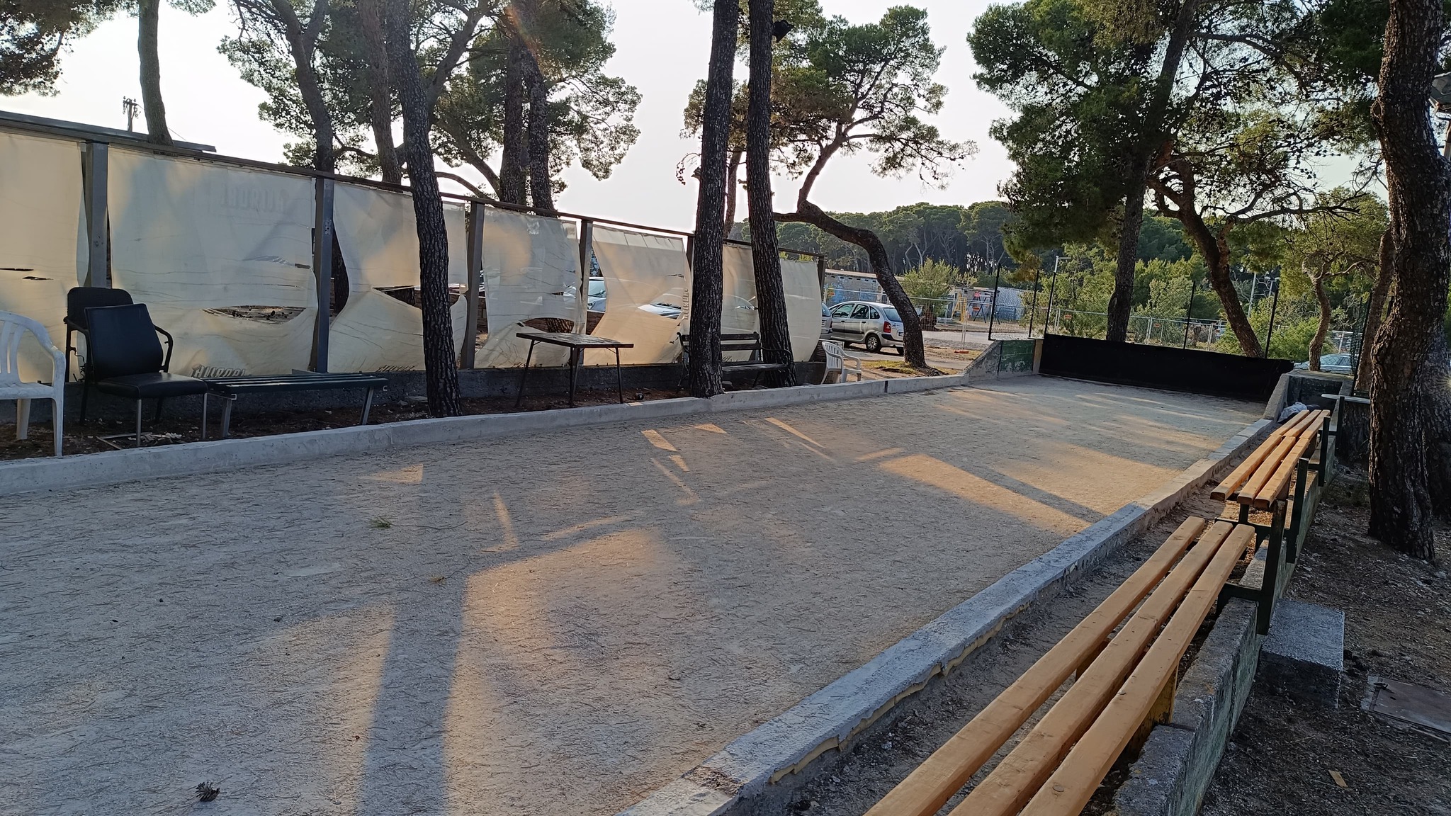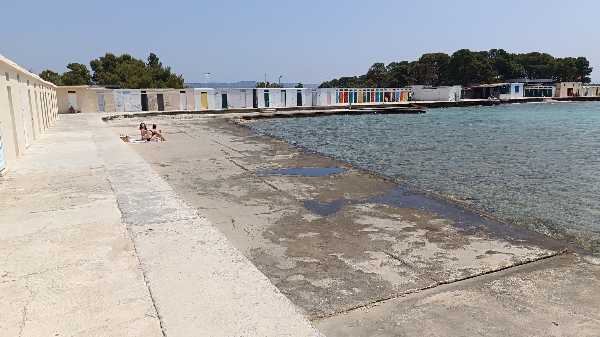 Osim Rašija i čuvenih krafni još su dva cafe bara otvorena uz njega ali bez ičega u ponudi za pod zub. Srećom trafika otvara kroz koji dan a i pekara uz more te ona na ulazu. A i dućan na ulazu uskoro otvara. Restoran uz dućan je isto već počeo sa radom. Nažalost onaj uz balotanu izgleda neće raditi ni ove godine. A hrpa crnih vreća sa smećem koju su ostavili na terasi restorana bode u oči a komunalci nemaju ovlasti za odvesti ih. Platna koja dijele restoran od balotane su većinom potrgana. Kod kabina bi trebalo izbrusiti onaj smeđi sloj na rivi uz tuš i dalje prema stepenicama za ulaz u more. Kad je mokar sklizak je. Jedne sezone se to odradilo ali treba opet.