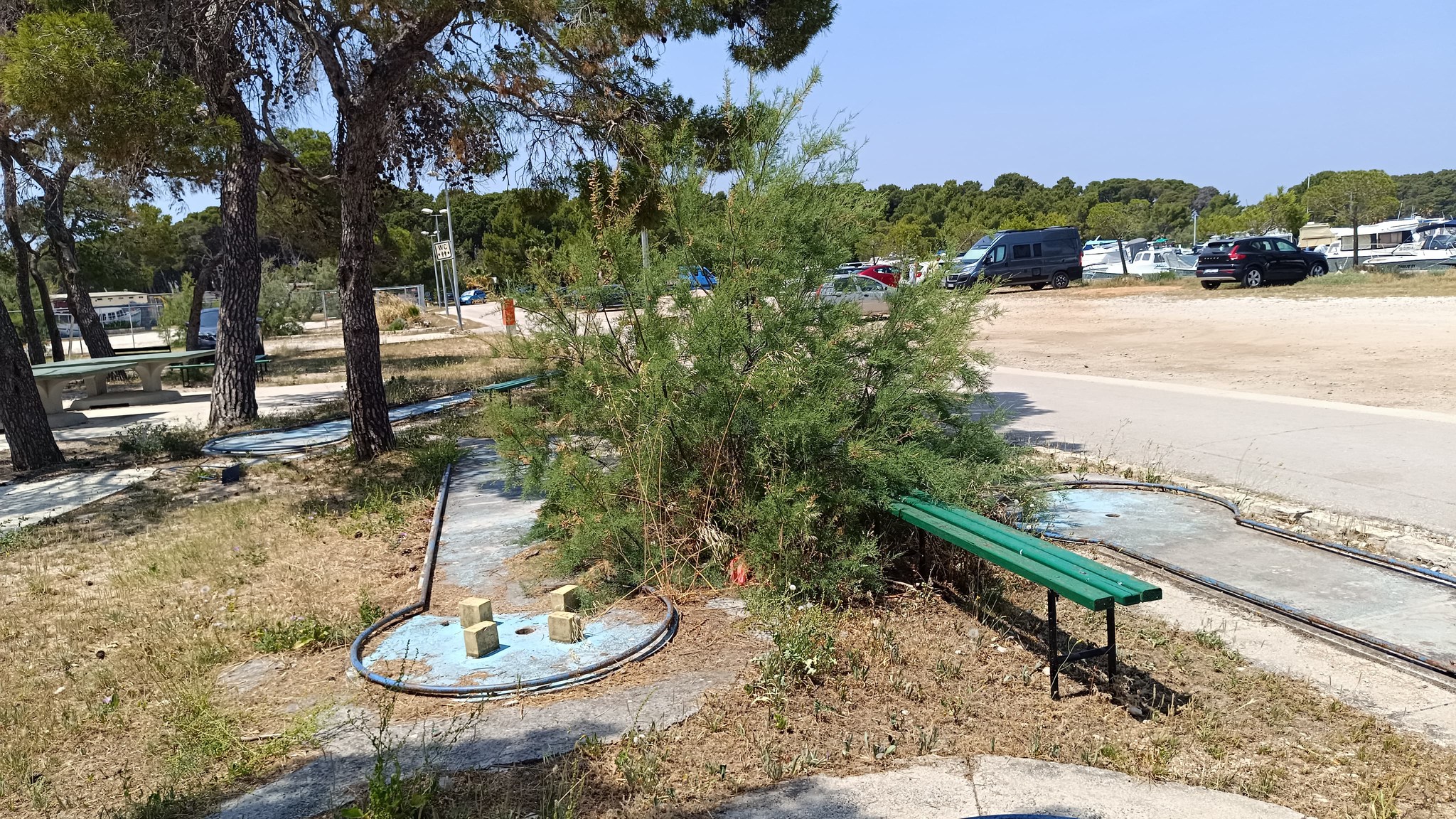 Skale za izlaz iz mora i penjanje na platformu u moru treba na gazištima očistiti od morske trave i školjki. Kamenje koje jugo izbaci na rivu kod treba povremeno vratit natrag u more. Gradi se novo dječje igralište. Balotana izgleda pristojno zahvaljujući ekipi koja stalno igra i održava je. Mini golf je totalna suprotnost. Potpuno zapušten. Pun šiški i iglica od bora, neke grane ulaze u polja, metalne konstrukcije se nisu obojale otkako je izgrađen. Par klupa uz njega traži da se promjenu dotrajale i nestale daske.