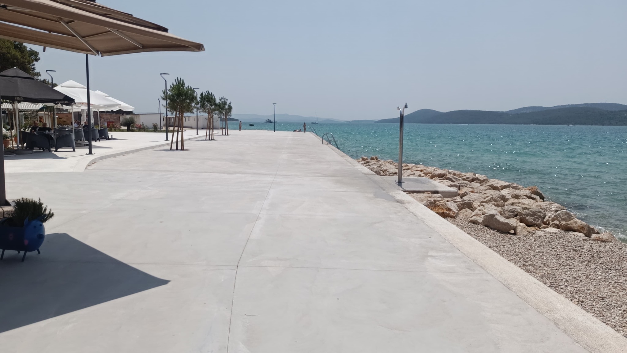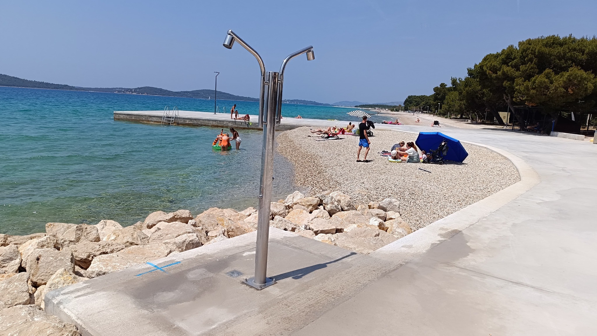 “Jadrija. Sezona kupanja je počela još ranije nego prošle godine. Nadležne službe po običaju ne prate situaciju i kasne sa mnogim stvarima. Renovirani dio izgleda lijepo. Ali na betoniranom dijelu hlada ni za lijek. Dobili smo novi tuš i kabine za presvlačenje mnogo komotnije od klasičnih. Pohvala za dizajn cerade.
