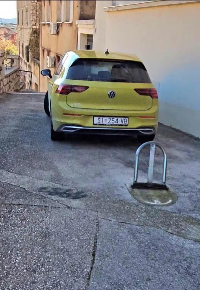 Ima li gradonačelnikova obitelj povlastice, ili svi mogu parkirati ovako lijepo i imaju zagarantirani parking i ključ od ovog stupića?